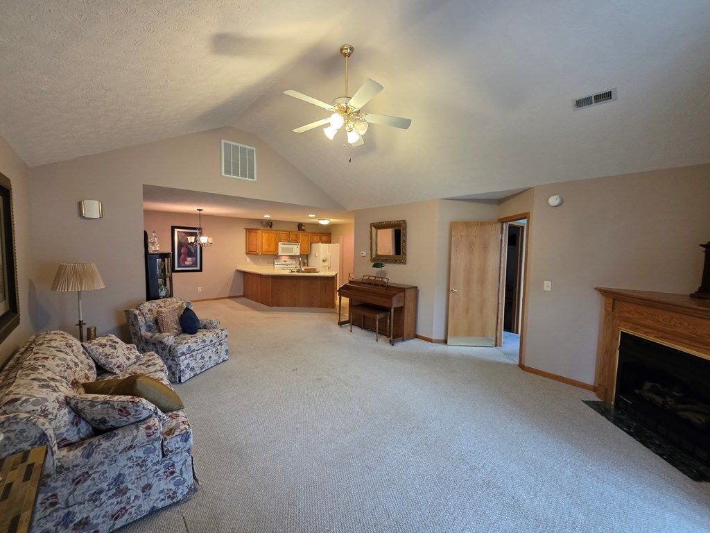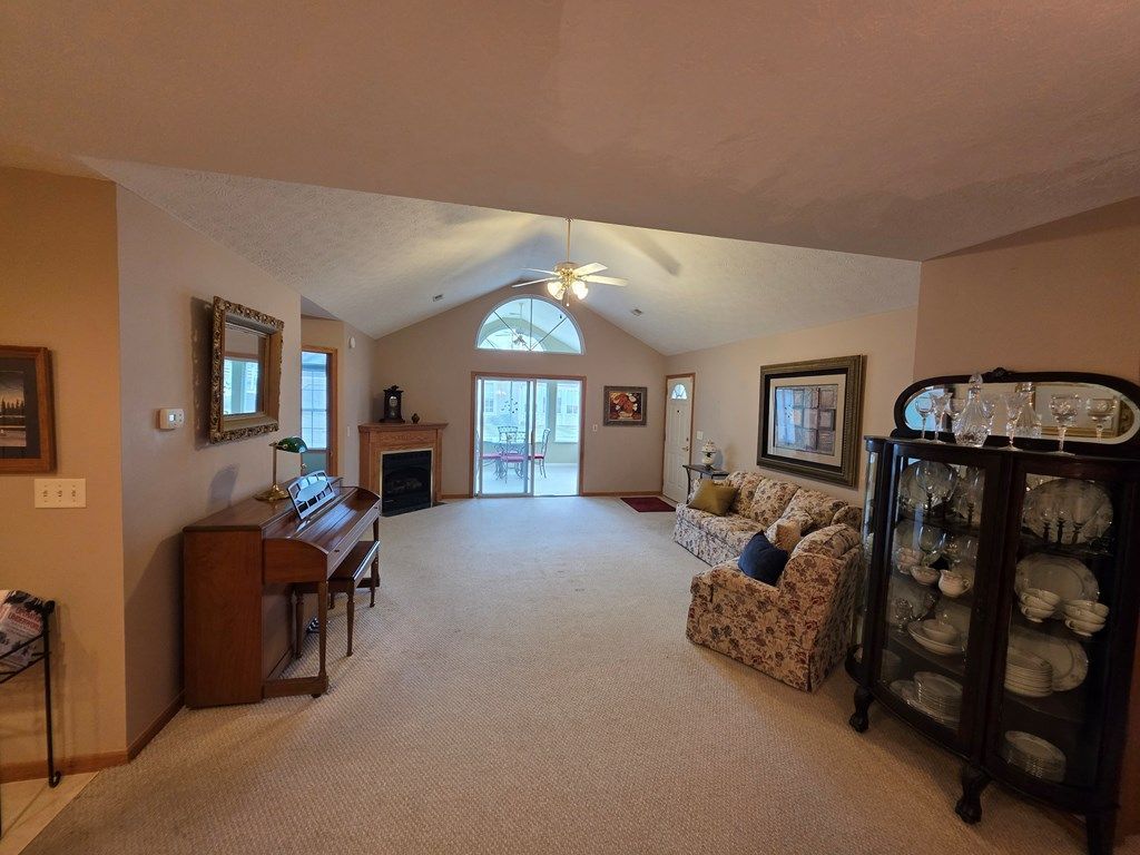 Welcome to Stone Landing Condominiums! This bright and open 1,412 sq ft condo offers vaulted ceilings and a spacious layout perfect for comfortable living. The equipped kitchen features a convenient breakfast bar, while the generous laundry room includes a washer and dryer. You'll find two large bedrooms, each with walk-in closets, along with two full bathrooms. Relax in the 15'x10' sunroom or cozy up by the gas fireplace. Recent updates include a Lennox furnace and central AC. The home also offers a large two-car garage with attic storage for added convenience. The monthly condo fee of $365 covers exterior maintenance and insurance, snow removal, lawn care, trash, and water/sewer. Residents also enjoy access to a clubhouse with exercise facilities. Ideally located near shopping, restaurants, the hospital, and easy access to Route 30, this condo combines comfort and convenience in one great package.