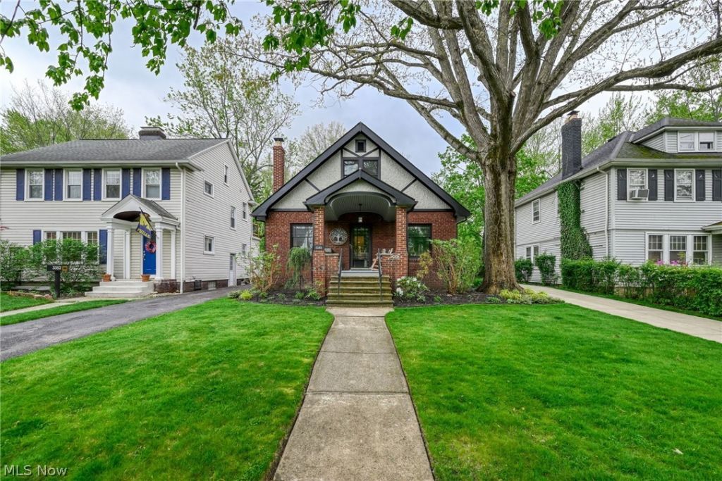 Classic brick bungalow with timeless character, a slate roof, and thoughtfully designed living spaces throughout. The main level features hardwood floors and rich natural woodwork, along with a light-filled four-season room that adds flexible living space year-round. The living room is anchored by a fireplace with built-in details and flows into a formal dining area, creating a warm and functional layout. The entire second level is dedicated to a spacious primary suite, complete with a full bath, walk-in closet, and access to a private balcony?offering a unique retreat separate from the main living areas. Outside, the home continues to impress with thoughtful landscaping and a private backyard setting. A detached two-car garage provides additional convenience and storage. Located in a desirable area of Cleveland Heights with convenient access to local shops, dining, and nearby amenities, this home blends classic architecture with everyday functionality.