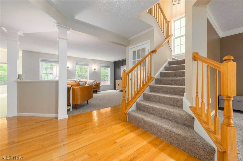 Welcome to your new home! There is so much to see in this Meadow Lakes beauty that's been thoughtfully cared for, upgraded with intention, and ready for its next chapter. The open floor plan flows seamlessly from one living space to the next, blending both function and comfort. The main level boasts a front facing office or playroom, an oversized kitchen with breakfast bar, and huge morning room encased in windows. The primary suite is an oasis of tasteful tranquility remodeled in 2023 with a fully custom built primary bath. Three additional bedrooms on the second level are generously sized and ready for a growing family or guest. The basement, fully finished in 2021, offers a modern design with LPV flooring and custom built-ins. A full wet bar adds to the ambiance of this additional living space?an invitation to entertain, celebrate, or simply unwind at the end of a long day. The backyard living space is ample, but private, bordered by a wooded lot. A stamped concrete patio extension with a fire pit, completed in 2020, makes for evenings under the stars space to gather, relax, or escape. Additional upgrades include new roof (2024) Newer bedroom carpets (2020), New light fixtures throughout (2025). Schedule your showing and see for yourself that this home definitely has 'All the things!