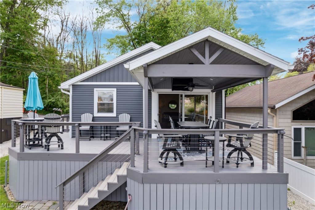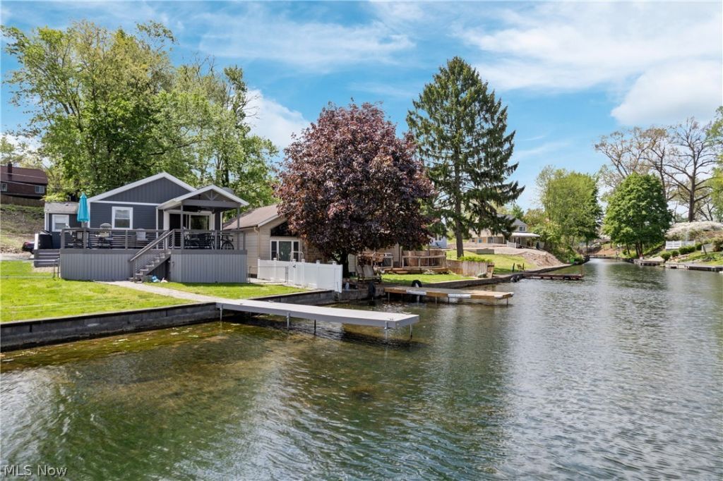 Petite move-in ready lakefront retreat located on the Main Chain of Portage Lakes in the heart of Coventry Township's Clock Tower district. This ranch home has been completely remodeled inside and out, offering a rare opportunity for affordable waterfront living in excellent condition. Enjoy stunning lake views from the beautifully updated covered deck (2020), featuring wired railings, a retractable awning, mounted TV, and ceiling fan?perfect for relaxing or entertaining. Fully fenced in lakeside. Exterior upgrades include a new seawall and pavers (2017), dock (2014), roof (2010), and new siding, gutters, and trim (2021). A new glass sliding door (2020), covered front porch, and concrete parking pad (2016) add to the home's curb appeal and functionality. Inside, you'll find newer vinyl/LTV tile flooring throughout, a remodeled kitchen (2014) with ample white cabinetry and updated appliances, and a remodeled bathroom (2016). The home offers best of both worlds and year-round comfort with gas boiler heat and central air conditioning. Additional updates include a 100-amp electrical panel and convenient first-floor stackable laundry, plus additional laundry area in the basement. Connected to public water and sewer, this property combines modern convenience with lakeside charm. Additional 40% of an acre land available through separate seller. Opportunities like this don't come along often?start enjoying lakefront living just in time for summer on Portage Lakes!