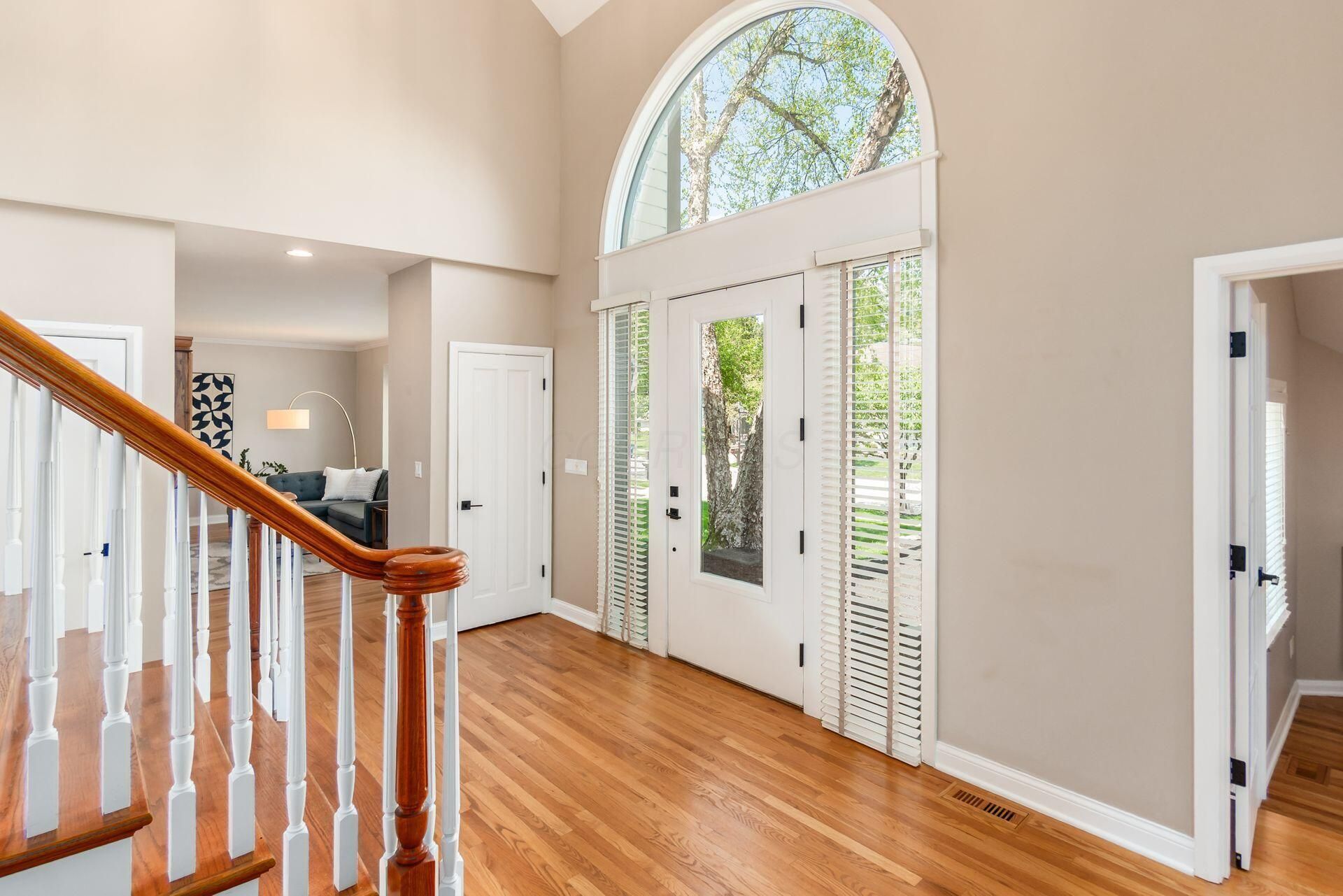 Fantastic end of cul de sac location! Step inside the entry to a stunning two story foyer with a bridal staircase. Sunlight pours into the formal living and dining rooms, showcasing the gorgeous hardwood floors that continue into the large island kitchen. The kitchen is beautifully appointed with stainless steel appliances, including a double oven, gas cooktop, microwave, ice maker and Sub-Zero refrigerator, complemented by quartz countertops, a spacious island, and a dual-sided fireplace shared with the vaulted great room. The private den features French doors and built-ins, plus a convenient half bath. Upstairs, you'll find four bedrooms, three full baths, and a convenient laundry room. The owner's suite is a true retreat with a gas fireplace, vaulted ceiling, & a luxurious en-suite bath with dual quartz vanities, soaking tub, & separate shower. The lower level has new LVP flooring & fresh paint & offers a bar, large workshop (including all outlets w/20 amp service & a dust collection system), expansive recreation space, half bath, & extensive storage. Nature lovers paradise in the private backyard plus two decks, a patio, and plenty of room to relax or play! This one is gorgeous! Interior photos will be posted 4/23!