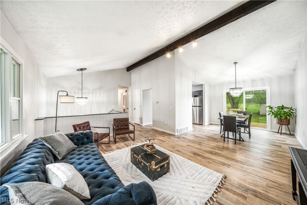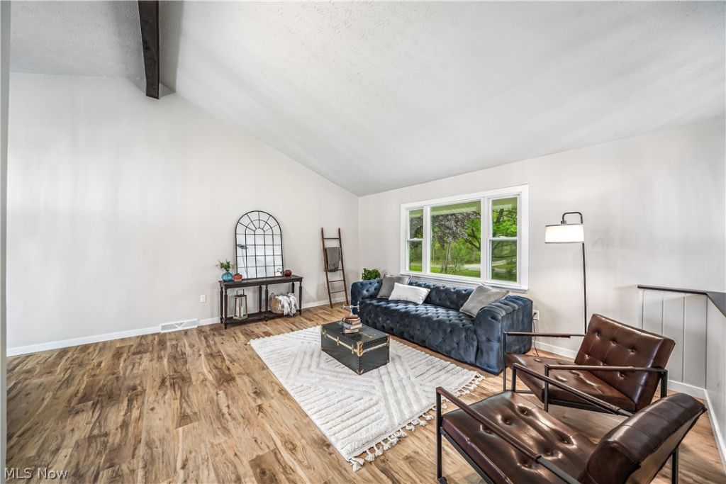 Welcome to this beautifully updated, move-in ready bi-level nestled on over an acre on a quiet side street?offering the perfect blend of space, privacy, and modern updates. The main level features a grand, open-concept layout with soaring vaulted ceilings and a stunning wood beam that flows seamlessly into the dining area, creating an inviting space ideal for everyday living and entertaining. The completely remodeled kitchen is a standout with butcher block countertops, classic subway tile backsplash, and stainless steel appliances. Nearly every inch of this home has been refreshed with new flooring, paint, lighting, doors, outlets, and windows. Three spacious bedrooms and a fully renovated bath complete the main floor, while the primary suite includes its own stylishly updated bath with shiplap accents and unique flooring. The finished lower level offers a contemporary second living space with a trendy studio feel, along with two additional bedrooms with egress windows, a half bath, and new carpet?perfect for guests, a home office, or multi-generational living. The home has also been recently waterproofed, adding peace of mind for the new owner. Step outside to enjoy the private one-acre setting, complete with a brand new deck off the sliding door?ideal for summer BBQs and outdoor entertaining. A new brick walkway and updated stoop provide excellent curb appeal. Major updates include a metal roof (under 5 years old), central air (2020), and hot water tank (2024). A rare opportunity to own a fully updated home with acreage in a desirable setting at this price point! (This property is agent owned)